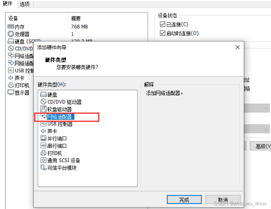 当我们通过虚拟机安装系统后默认只配置了一个网卡,所以我们还需要增加一个网卡,用于做wan口