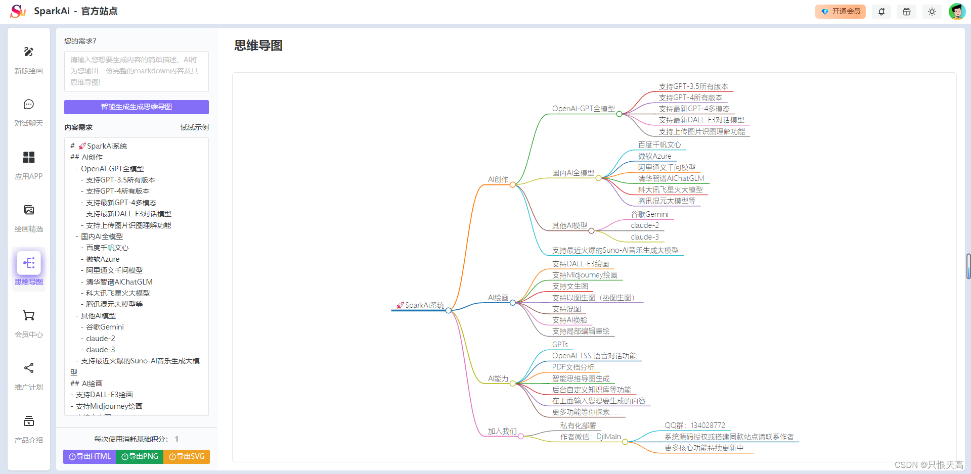 思维导图:一键根据需求生成思维导图,可导出不同类型图片