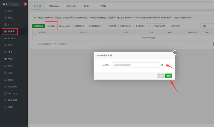 注意①: 使用mysql8.0版本,需要重置root密码才能创建数据库