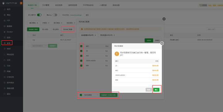 注意②: 同步服务器端口刀宝塔运维面板(重要)
