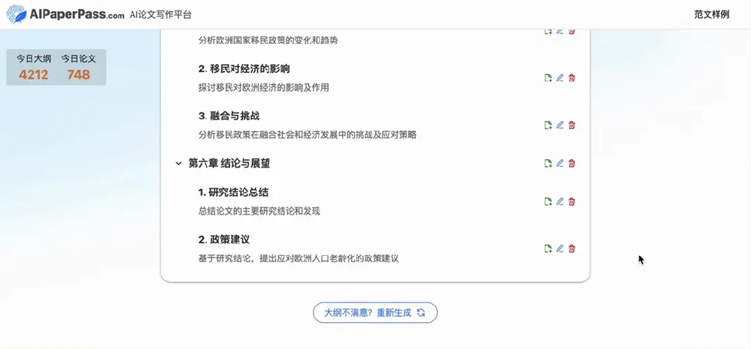 AI PaperPass为我们提供了无限次免费生成论文大纲的服务,这意味着我们可以反复生成并优化,直至找到最符合我们期望和需求的满意大纲。