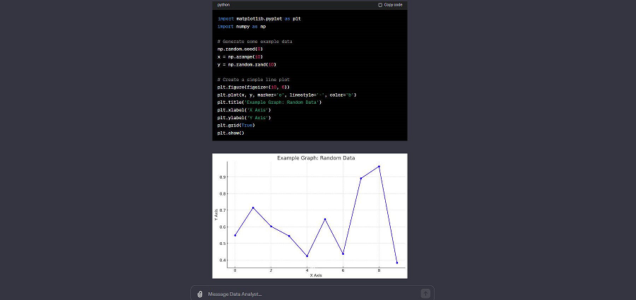 你可以使用 ChatGPT 的 Python 解释器/沙箱来帮助在 TSV、YAML、CSV 和 JSON 等格式之间进行文件转换。 数据分析师还可以制作汇总图和图表来可视化数据趋势、执行广泛的统计分析并直接从文件内容生成 SQL 表和模式,从而准确地识别每列最合适的数据类型。 此外,它还可以对数据文件执行彻底的错误检查,以查明丢失的数据或不规则的字符。 你能看出这对于此类工作来说如何节省大量时间吗?