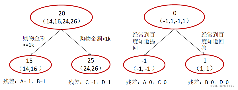 拨,每拨用平均年龄作为预测值。进而得到A,B,C,D的残差分别为-1,1,-1,1。