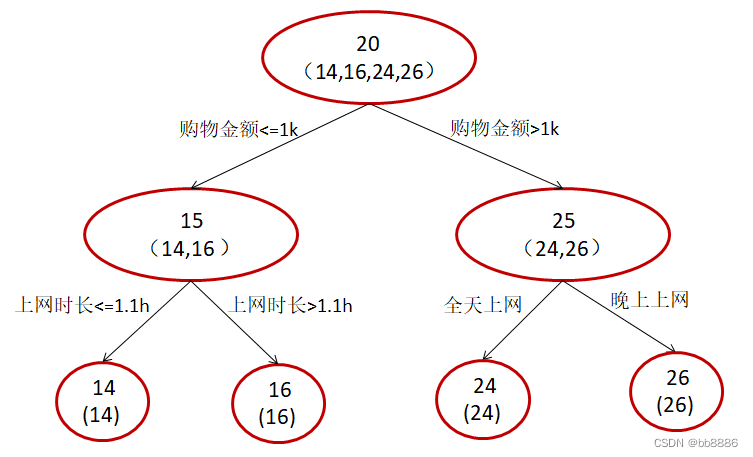 题目:假定训练集只有4个人:A,B,C,D,他们的年龄分别是14,16,24,26。其中A、B分别