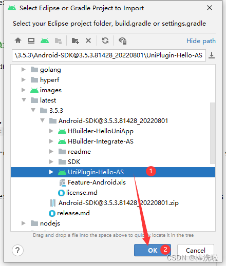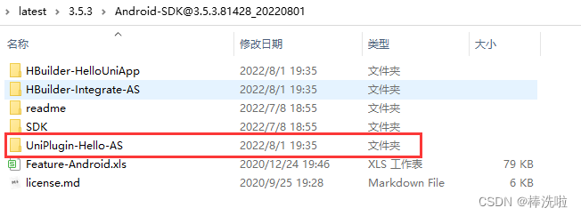 解压后相关文件如下图,我们只需要用到里面的示例工程UniPlugin-Hello-AS来进行插件开发就好