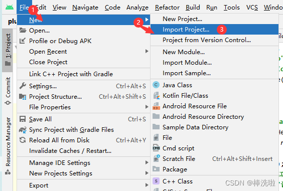 经过上一步的添加动作,jar文件已经自动引入了,如图中1标所示;然后需要将2标的配置添加进去,点击同步就好,然后就可以正常使用包了