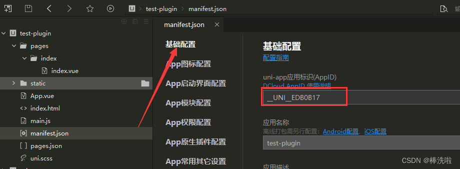 打开uniapp项目,在根目录下找到manifest.json文件,在基础配置中获取到appid