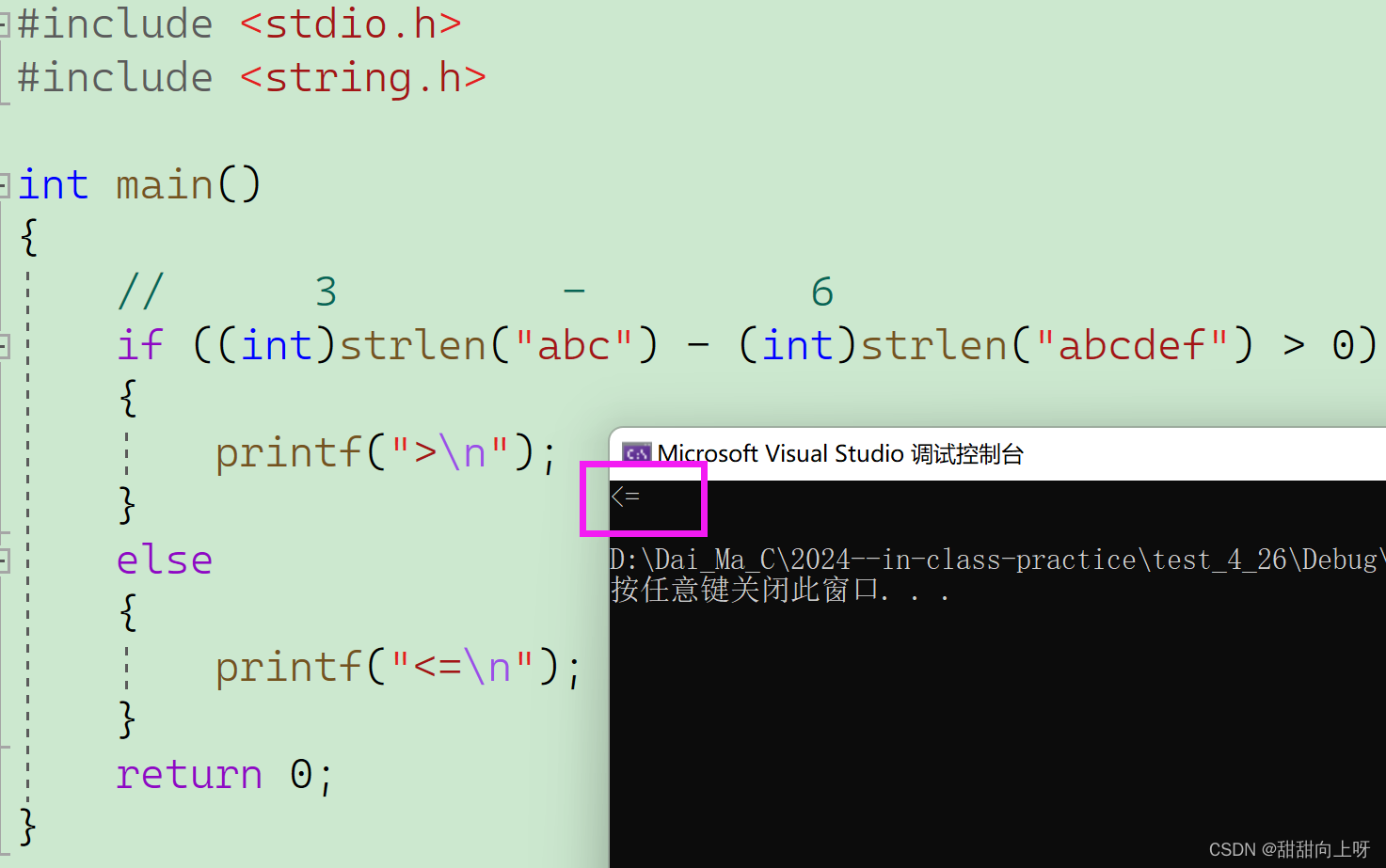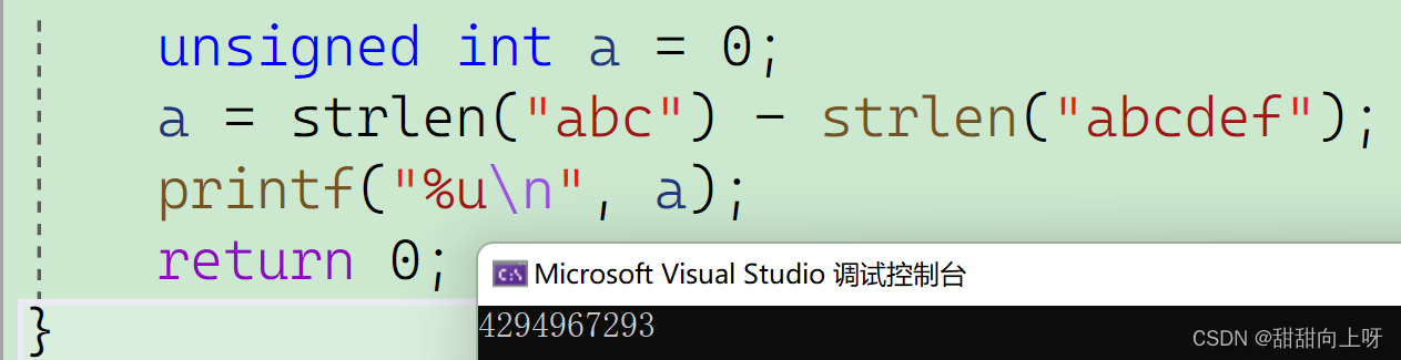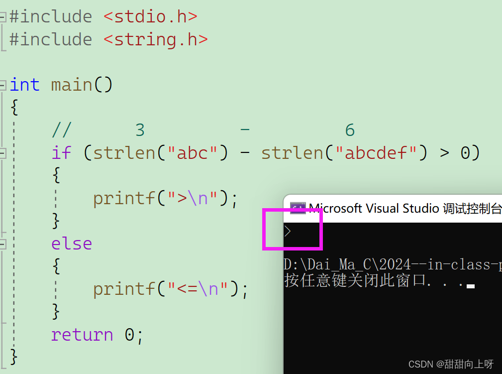 输出">"的原因:因为strlen的返回值是一个size_t类型的,也就是无符号的整形。