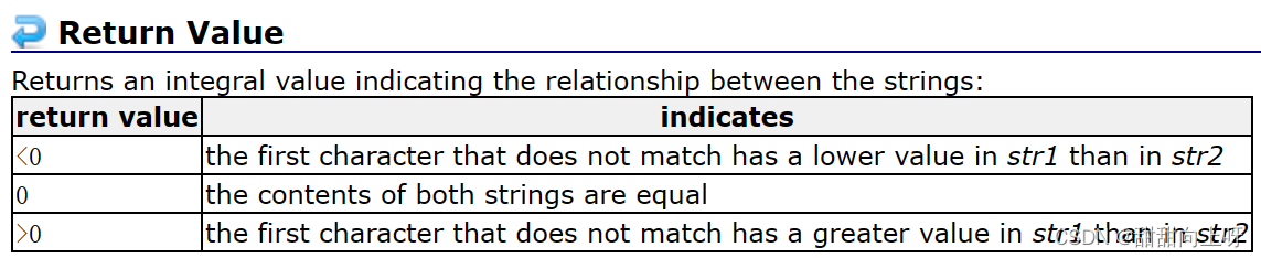 strcmp的使用需要包含头文件:#include <string.h>比较的是字符的ASCII值。\0的ASCII最小。补充如下图: