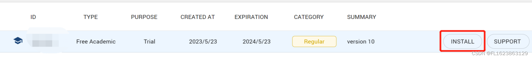申请成功后,你会获得一个license,在右侧点击install,得到一个key