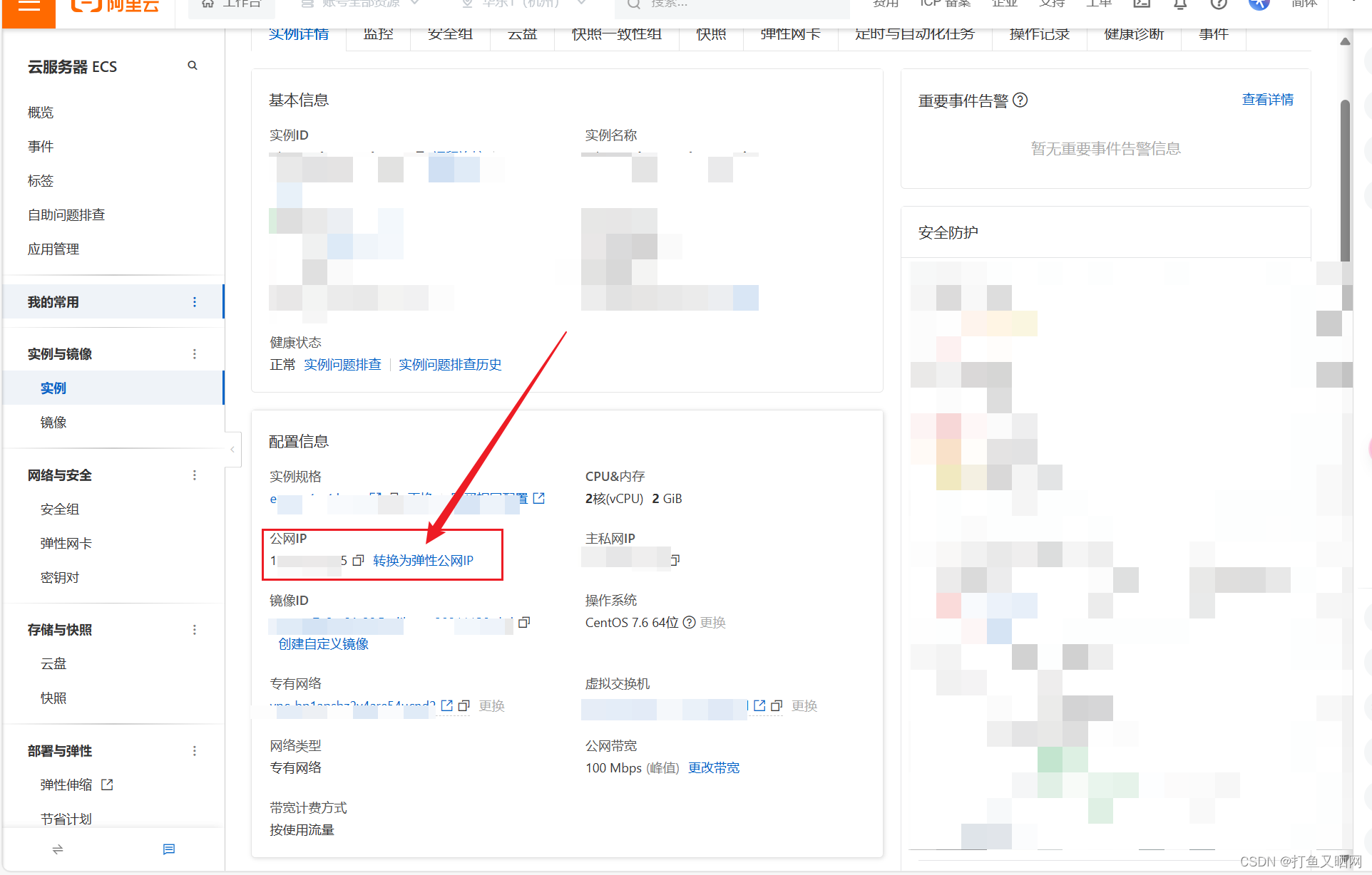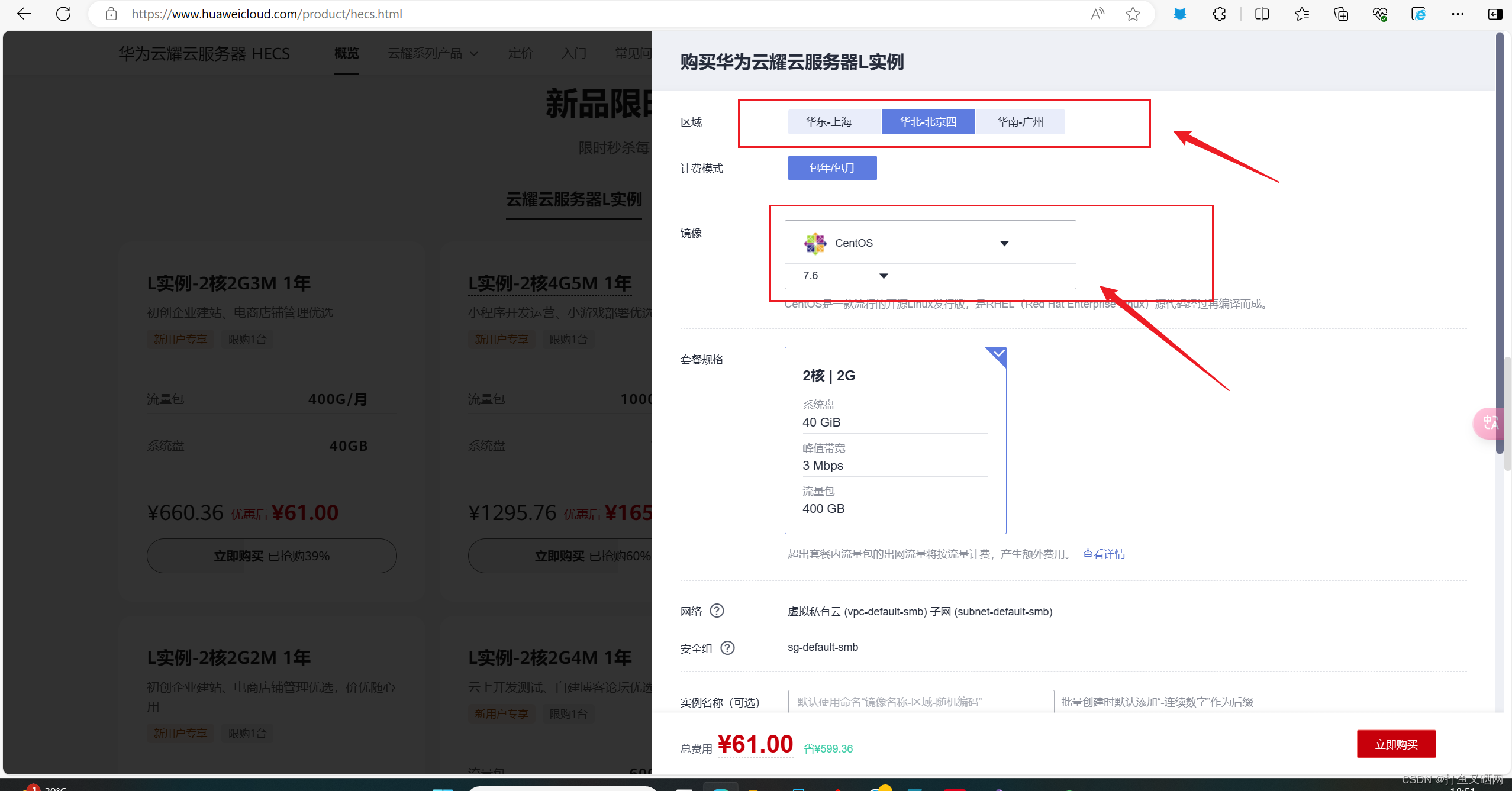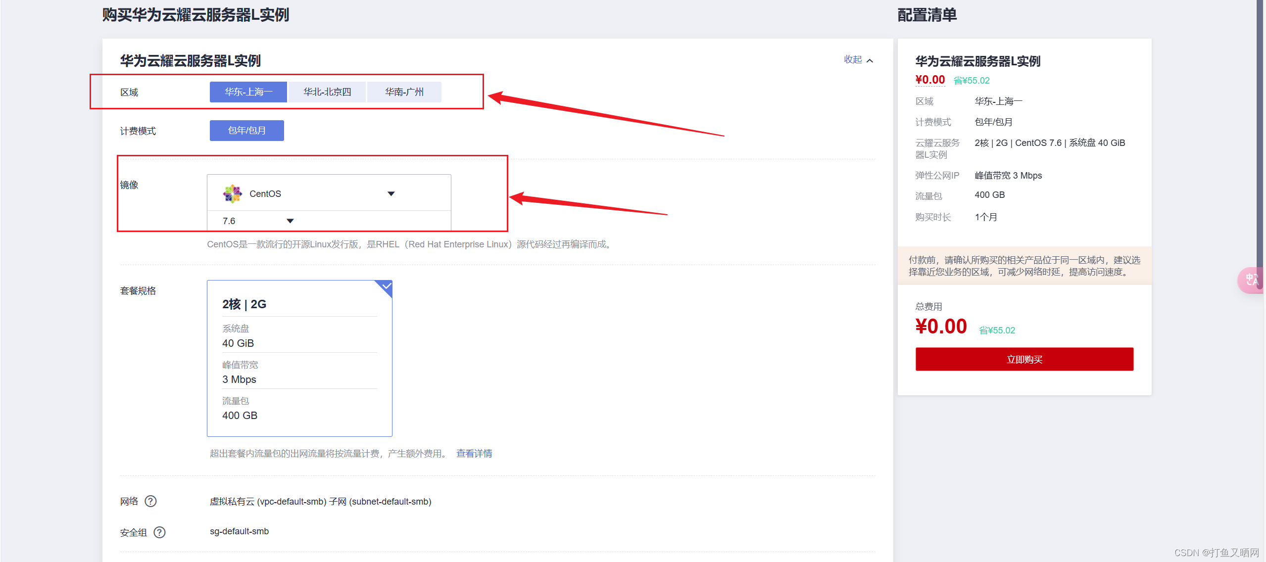 需要改动的只有这两个红框框: 区域选择距离自己较近的区域即可。 然后镜像选择cenTos。(博主用的centos, 友友们可以根据跟随的老师或者学校选择)。版本是7.6, 7.8都可以。