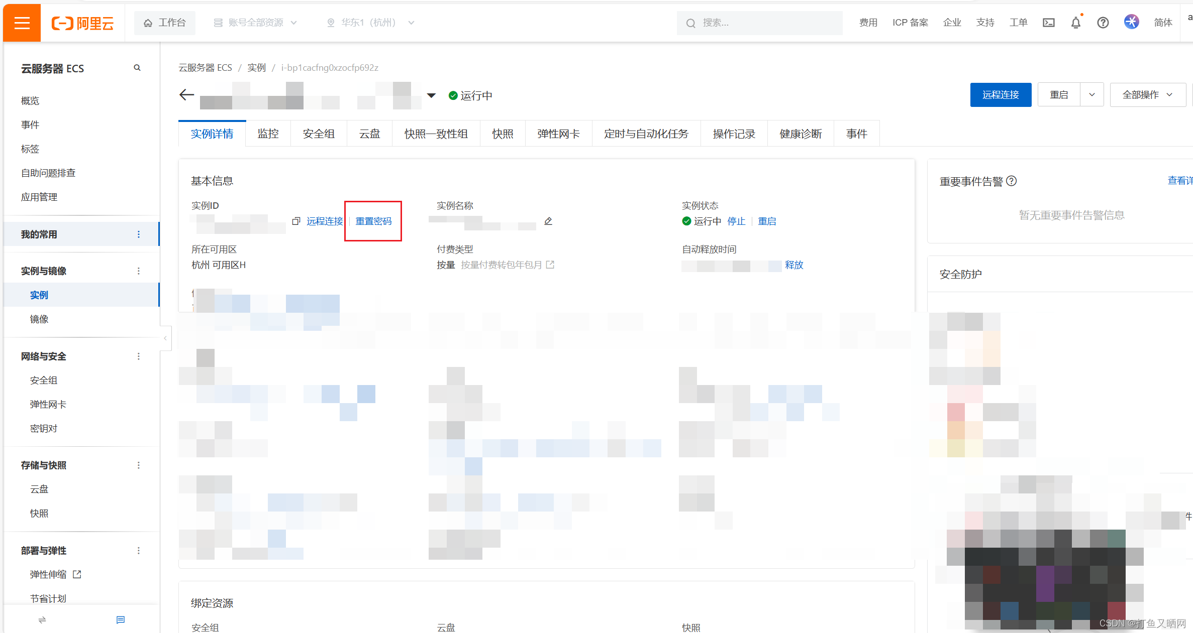 点开我们刚刚弄好的服务器, 打开的过程都应该是一样的, 就是打开我们的控制台, 在控制台中找到我们刚刚弄好的服务器:(我这里用的是阿里云服务器)