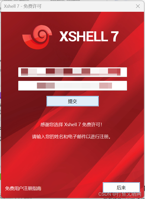 然后安装成功后打开我们的xshell, 第一次打开xshell会有填写姓名和邮箱, 然后填写友友们自己的邮箱就行。
