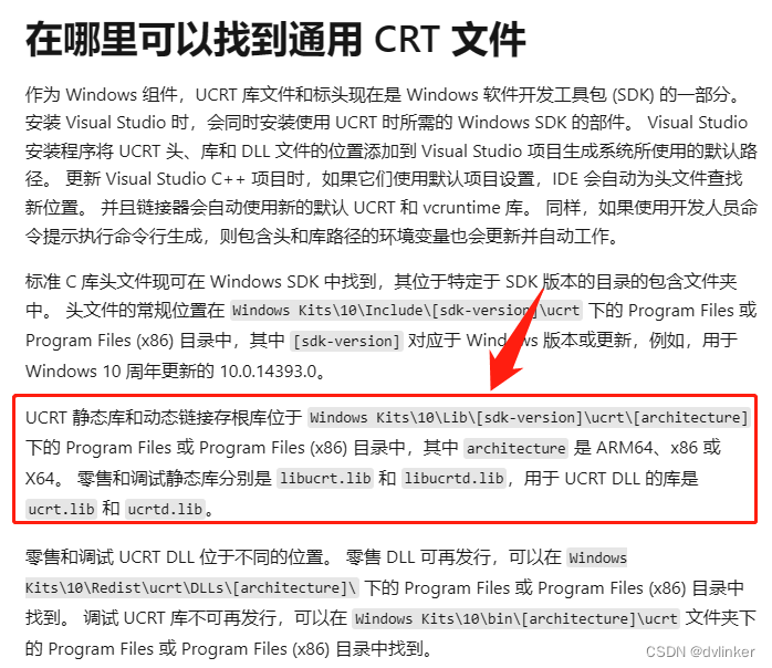 Upgrade your code to the Universal CRThttps://learn.microsoft.com/en-us/cpp/porting/upgrade-your-code-to-the-universal-crt?view=msvc-170在该网页中可以看到如何获取UCRT运行时库,如下所示: