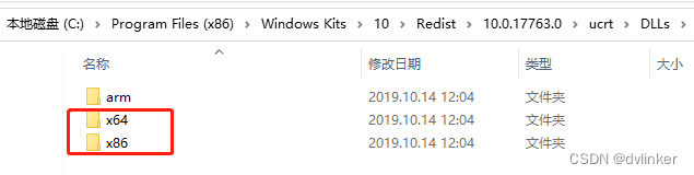 使用Visual Studio 2015及以上版本开发的C++应用程序,发布时都要带上这些通用运行时库。这些UCRT通用运行时库可以从Windows SDK中获取。比如可以从安装的Windbg10.0的安装目录中找到这些UCRT通用库,当时Windbg10.0就是使用Windows SDK安装的,所以安装目录中可以找到UCRT运行时库。比如我本机的安装目录: