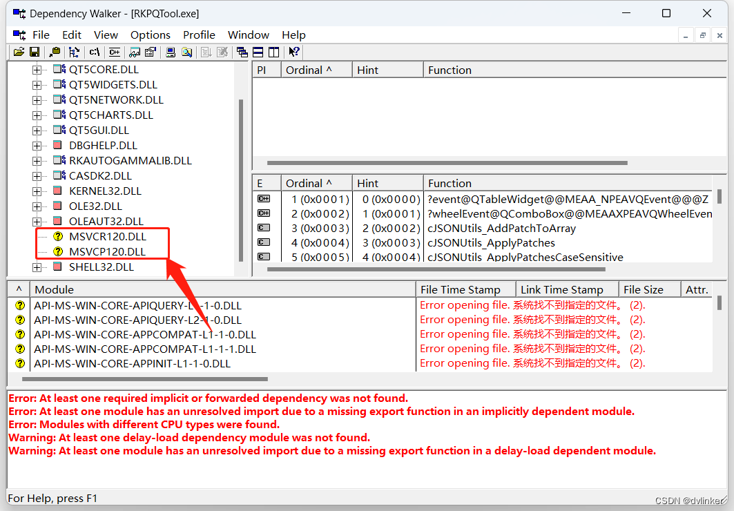 使用Dependency Walker和Process Explorer排查瑞芯微工具软件RKPQTool.exe启动报错问题https://blog.csdn.net/chenlycly/article/details/135229025 另一个与C/C++运行时库相关的实例,可以查看我的文章: