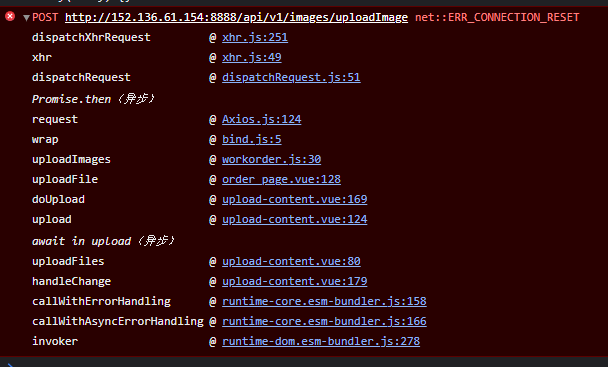 在测试了一系列的请求之后,发现问题可能是该次请求携带的请求信息过大。因为我们出现问题的请求是前端上传图片到服务端获取图片链接。此时,前端能想到的优化方案是限制用户上传图片的大小和格式,并且对上传图片进行压缩。