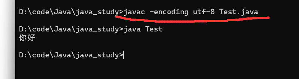 这时候我们需要使用unicode编码(这个编码方式可以处理类似汉字这种两个字节的字符)命令:javac -encoding utf-8 xxx.java