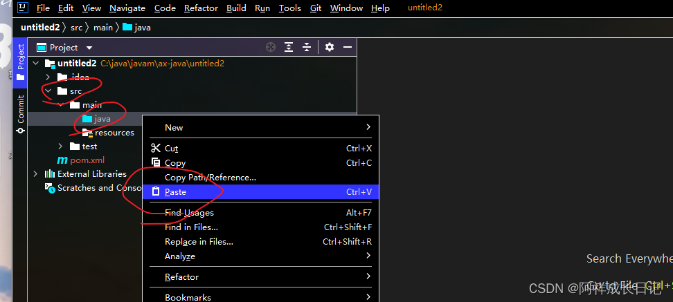 然后回到Maven项目这里,将复制好的内容粘贴到java里面