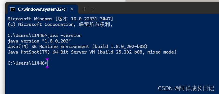 2.在黑框控制台中输入 java -version,即可查看Java版本号