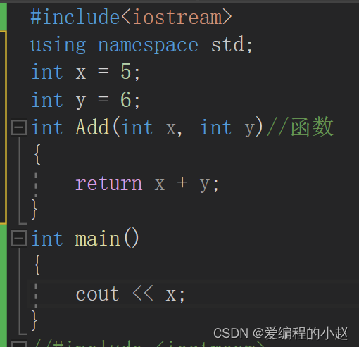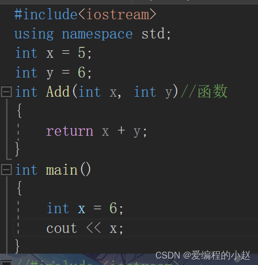 其实这里面还有一个问题就是为什么我这个时候在主函数中定义一个x不会与外面的x冲突的问题。