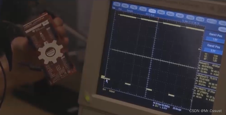 也可以在MCU板子(例如电机控制器)上用探针检查信号,或者直接在被控实物(例如电机)上观察现象。示例如下: