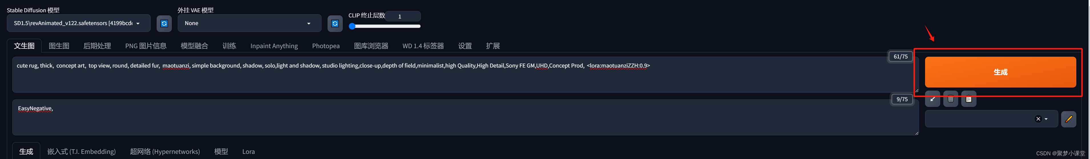 如果你想生成一样的效果,种子可以选择填写:39807646