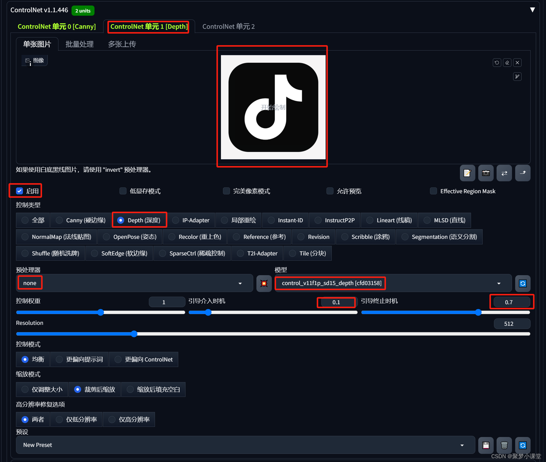 第七步,设置ControlNet 2:用深度图锁定画面的深度信息;