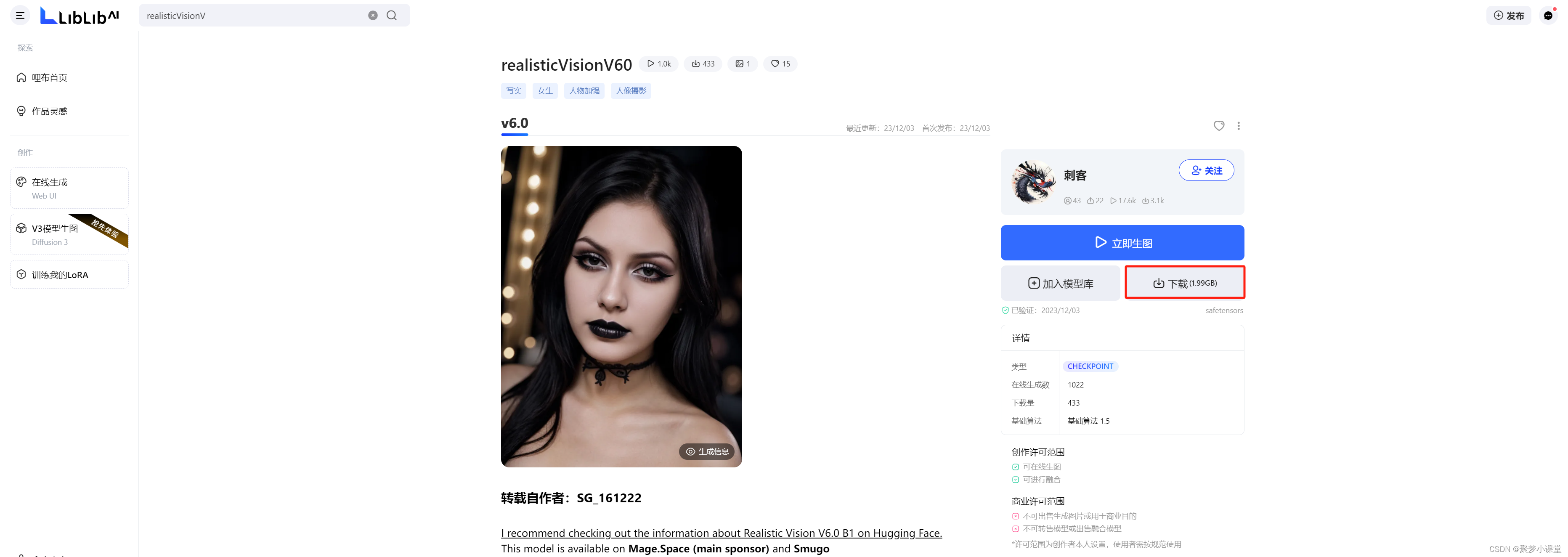 比如说liblib上,可以到这里下载: LiblibAI·哩布哩布AI - revAnimated_v122