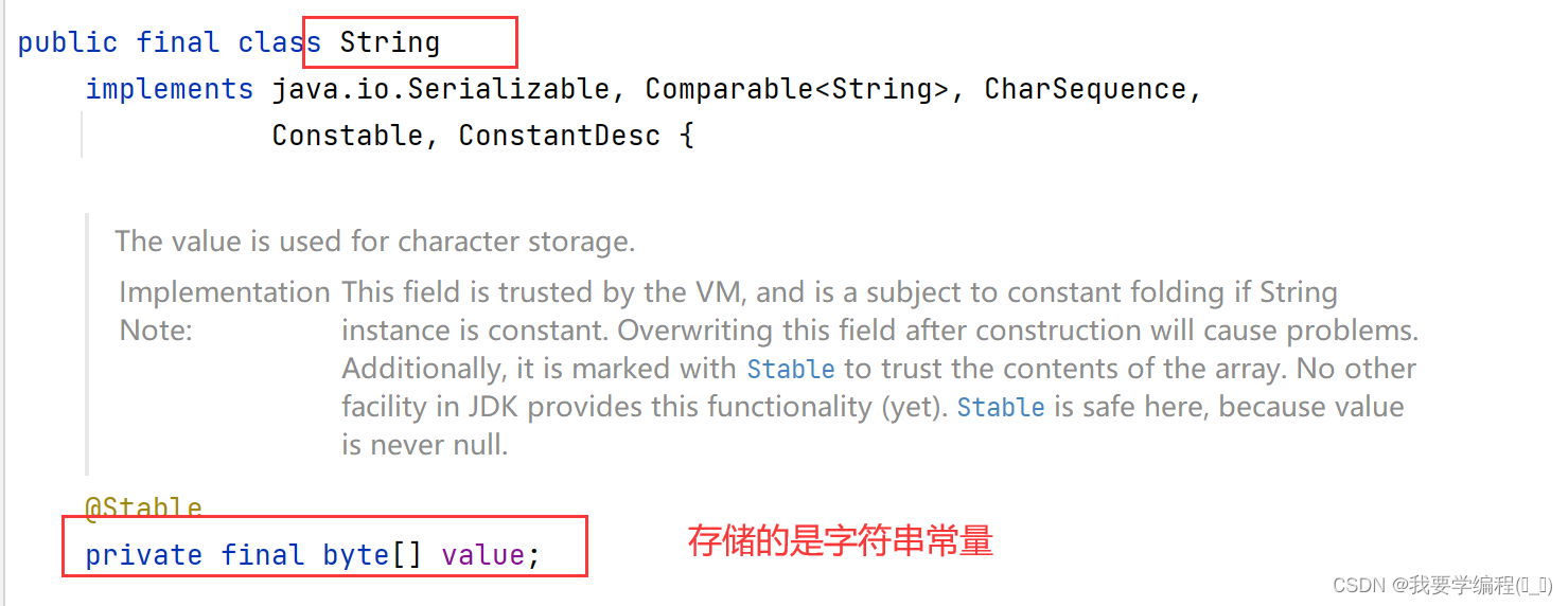 2. String类的字符串常量是储存在一个名为value的字符数组中的。