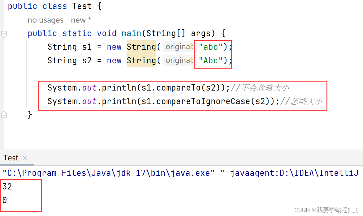 compareTo和C语言中的strcmp函数的功能是相似的。都是比较字符串的大小。既然是比较大小,那么返回的就是一个 int 类型的值。