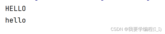 public class Test { public static void main(String[] args) { String s = "Hello"; System.out.println(s.toUpperCase()); System.out.println(s.toLowerCase()); }}