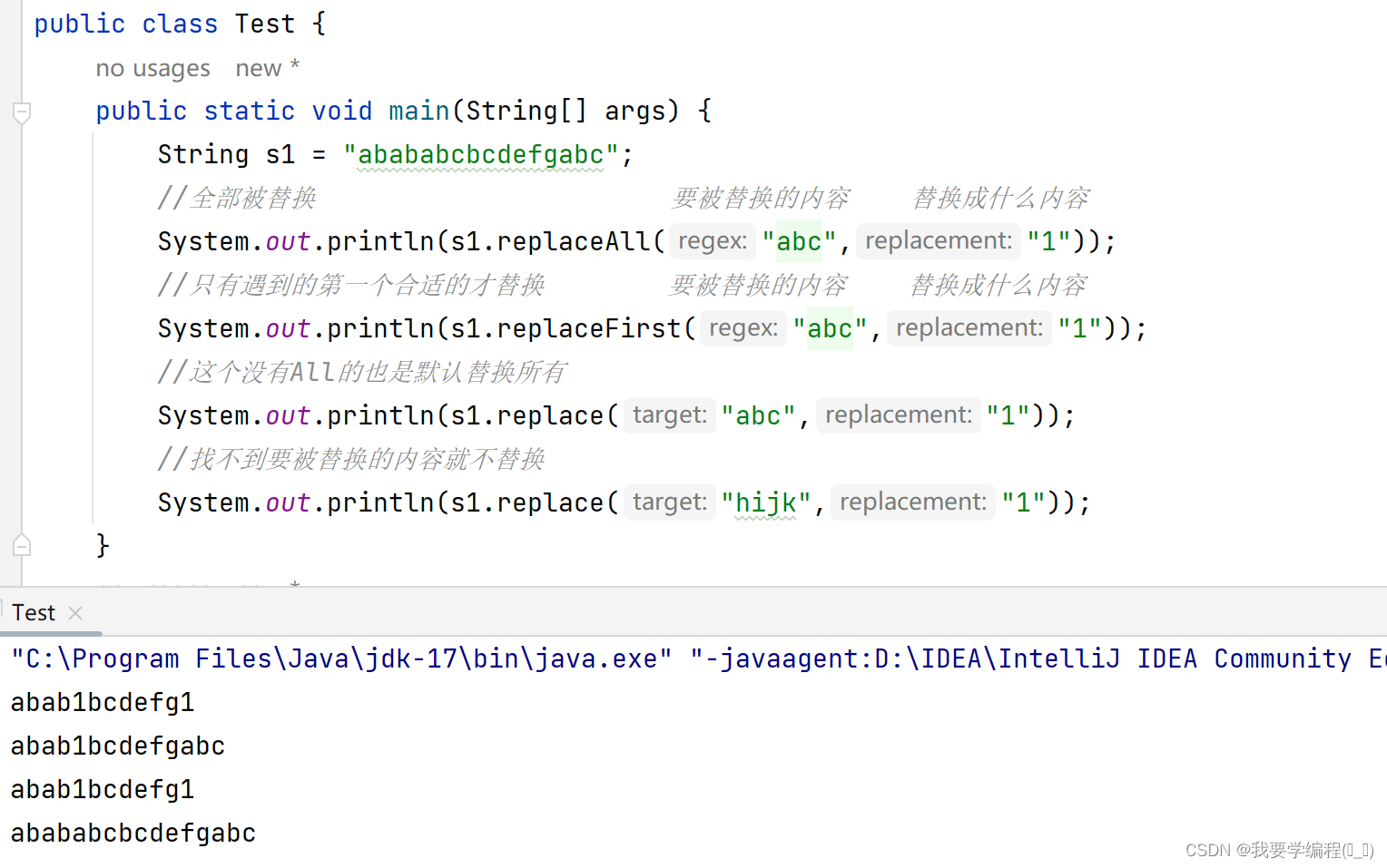 注意:由于字符串是不可变对象,替换不会修改当前字符串,而是产生一个新的字符串对象,给到我们原来的引用。 (至于过程,我们后面会学习这个)