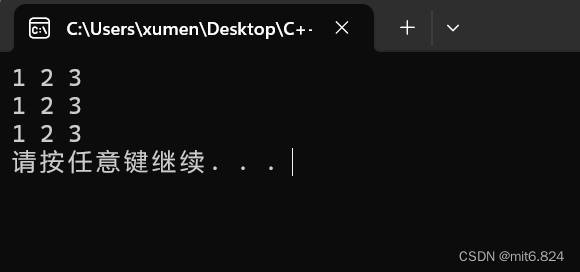 void test1(){vector<int> v;v.push_back(1);v.push_back(2);v.push_back(3);//1.语法糖for (auto e : v){cout << e << ' ';}cout << endl;//2.迭代器vector<int>::iterator it = v.begin();while (it != v.end()){cout << *it << ' ';it++;}cout << endl;//3.i数组for (int i = 0; i < v.size(); i++)cout << v[i] << ' ';cout << endl;}
