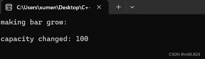void test4(){// 往vecotr中插入元素时,如果大概已经知道要存放多少个元素// 可以通过reserve方法提前将容量设置好,避免边插入边扩容效率低vector<int> v;size_t sz = v.capacity();v.reserve(100);cout << "making bar grow:\n";for (int i = 0; i < 100; ++i){v.push_back(i);/*for (auto e : v)cout << e << ' ';*/cout << endl;if (sz != v.capacity()){sz = v.capacity();cout << "capacity changed: " << sz << '\n';}}}