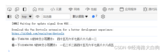 const num8 = numberBox.numberToChinese('456788.12'); console.log('看一下456788.12的中文小写展示:', num8); const num9 = numberBox.numberToChinese(122456788.5); console.log('看一下122456788.5的中文小写展示:', num9);