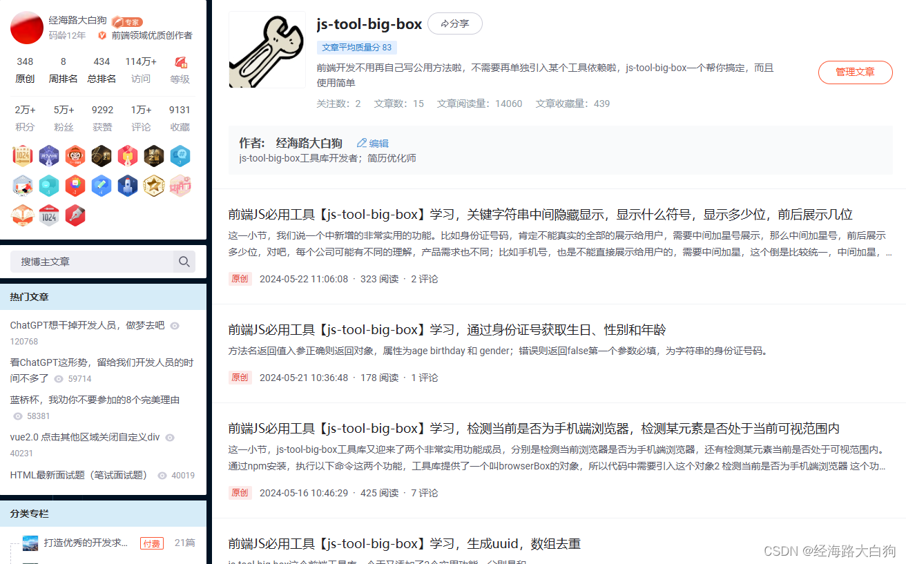npm包地址:js-tool-big-box - npm (npmjs.com) 包中提供了工具的学习文档地址以及作者