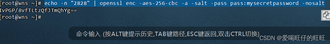 echo -n "2828" | openssl enc -aes-256-cbc -a -salt -pass pass:mysecretpassword -nosalt