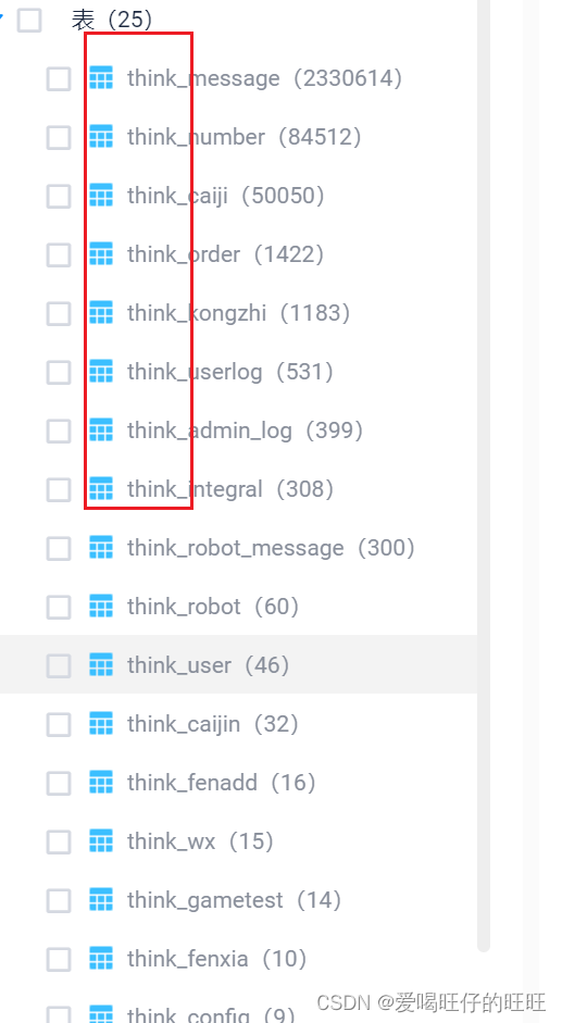 根据导出的数据库备份文件可以看出 数据库表的前缀 think_