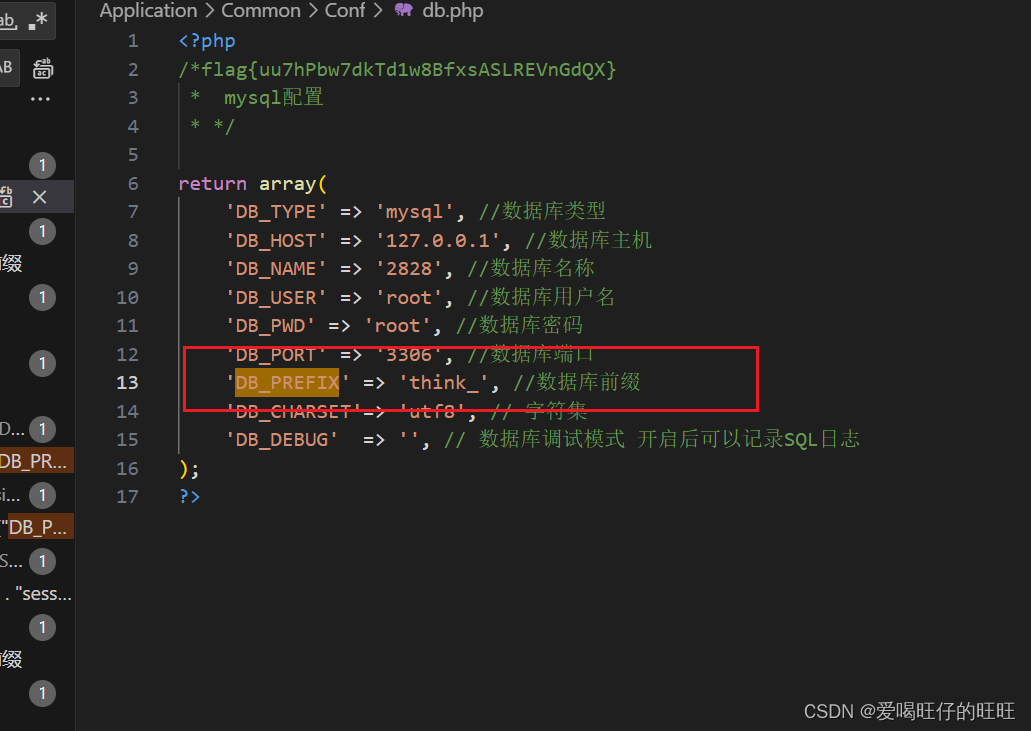 再继续追踪DB_PREFIX 可以得到数据库前缀
