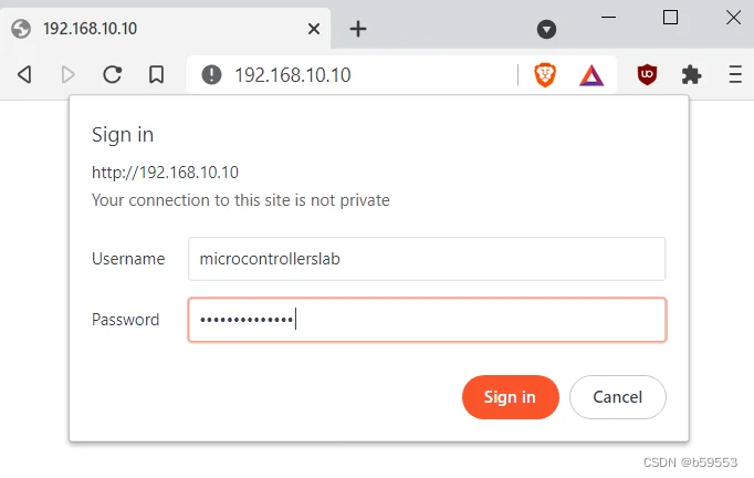 在浏览器 中键入IP地址,然后按回车键。将弹出以下窗口,要求输入用户名和密码。键入您在代码中指定的正确凭据,然后单击登录。