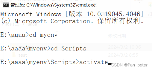 然后进入目录“E:\aaaa\myenv\Scripts”