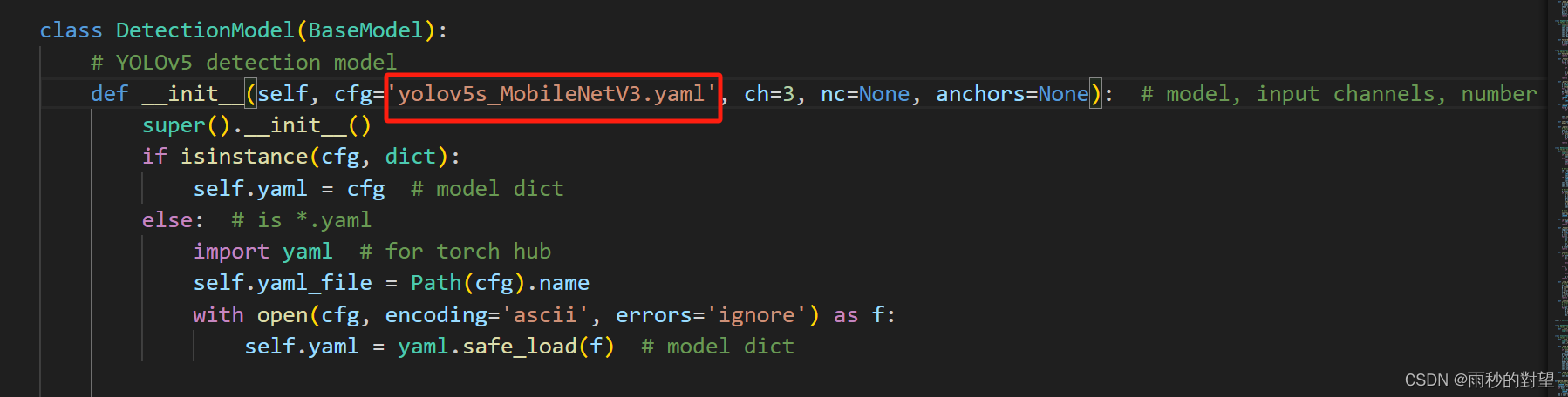 将模型配置文件修改为yolov5s_MobileNetV3_Small.yaml