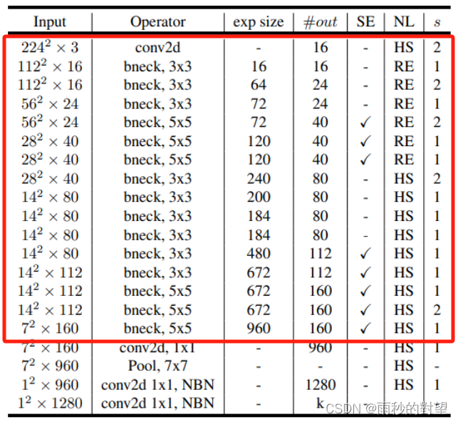• use_hs: 表示使用 h_swish 还是 ReLU,使用h_swish是1,使用 ReLU是0