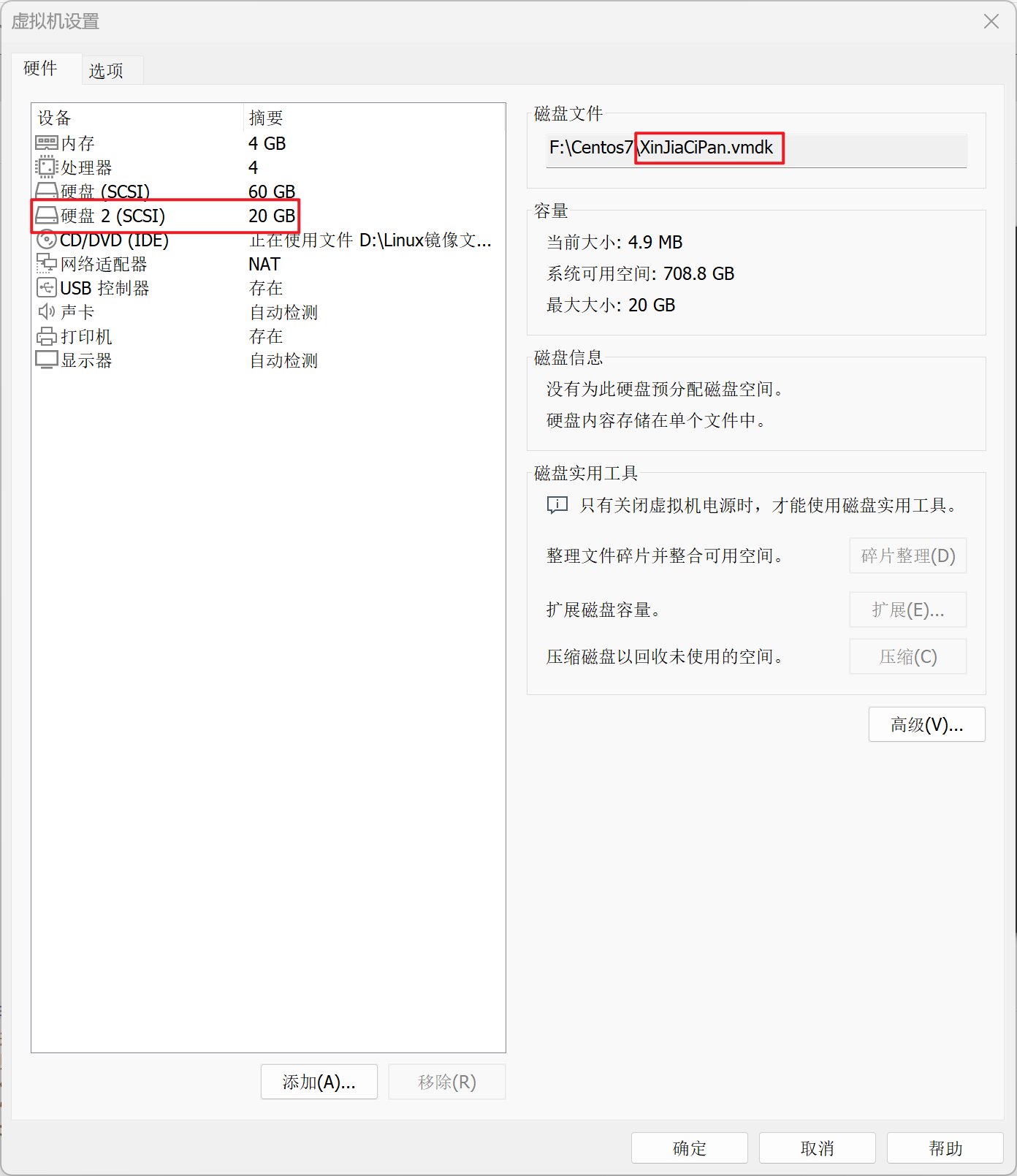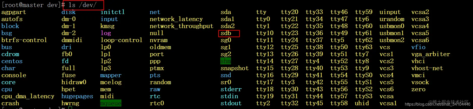 2.新加的磁盘是在/dev/新磁盘名,可以在/dev/目录下看到新磁盘