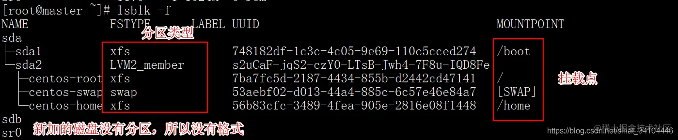 3.也可以使用命令 lsblk -f 查看磁盘的格式