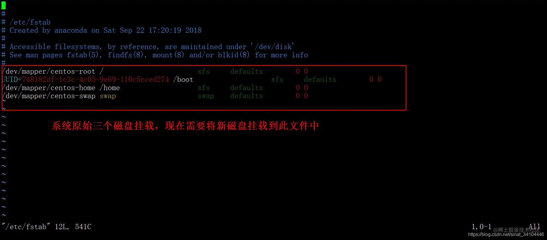 3.永久生效需要将磁盘信息写入到 /etc/fstab 中,这样开机才能自动加载