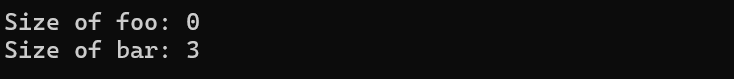 // constructing vectors// vector assignment#include <iostream>#include <vector>using namespace std;int main(){vector<int> foo(3, 0);vector<int> bar(5, 0);bar = foo;foo = std::vector<int>();cout << "Size of foo: " << int(foo.size()) << endl; cout << "Size of bar: " << int(bar.size()) << endl;return 0;}