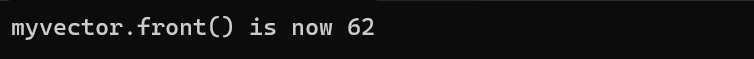 #include <iostream>#include <vector>using namespace std;int main(){vector<int> myvector;myvector.push_back(78);myvector.push_back(16);//取第一元素减去最后的元素myvector.front() -= myvector.back();cout << "myvector.front() is now " << myvector.front() << endl;return 0;}