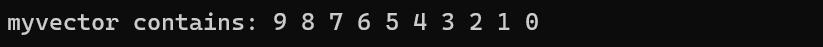 // vector::operator[]#include <iostream>#include <vector>using namespace std;int main(){ vector<int> myvector(10); // 10 zero-initialized elements vector<int>::size_type sz = myvector.size(); // assign some values: for (unsigned i = 0; i < sz; i++) myvector[i] = i; // 使用[]对里面的元素实现逆置 for (unsigned i = 0; i < sz / 2; i++) { int temp; temp = myvector[sz - 1 - i]; myvector[sz - 1 - i] = myvector[i]; myvector[i] = temp; } cout << "myvector contains:"; for (unsigned i = 0; i < sz; i++) cout << ' ' << myvector[i]; cout << '\n'; return 0;}